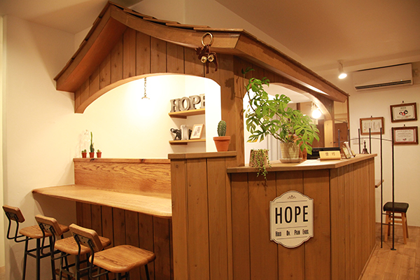 院内はすべて木目調に統一し、ナチュラルな印象に。